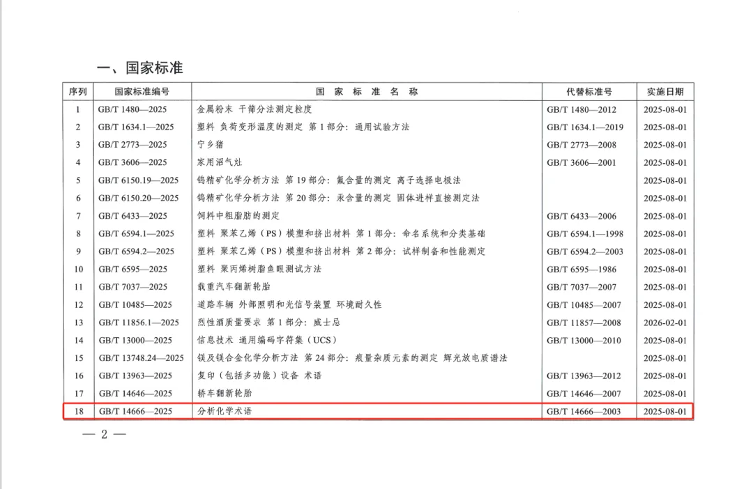 近(jin)日,中華人(ren)民(min)共和國(guo)(guo)(guo)國(guo)(guo)(guo)家(jia)標(biao)準(zhun)公告2025年(nian)第(di)2號,由(you)浙江省(sheng)化(hua)工產(chan)品質量檢驗站(zhan)有(you)限公司(浙化(hua)檢測)作(zuo)為第(di)一起草單位(wei)主持(chi)制(zhi)定的GB/T14666-2025《分(fen)析(xi)化(hua)學術語(yu)》國(guo)(guo)(guo)家(jia)標(biao)準(zhun)正式頒(ban)布。這項(xiang)歷時兩年(nian)、凝(ning)聚行業智慧的重(zhong)量級(ji)標(biao)準(zhun),標(biao)志著我國(guo)(guo)(guo)分(fen)析(xi)化(hua)學領域術語(yu)規范化(hua)邁入(ru)新紀(ji)元。